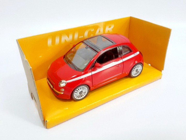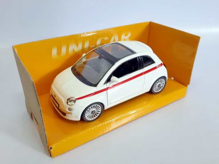 Mainan die cast merk Fiat 500 Putih-Uni Car/RMZ WT-Scala 1:32. Terdapat tatakan buat pajangan atau tatakan bisa dilepas dan pintu depan bisa di buka serta dilengkapi dengan fitur pull-back. lengkapi koleksi lainnya: Fiat 500 Merah-Uni Car/RMZ WT-Scala 1:32.