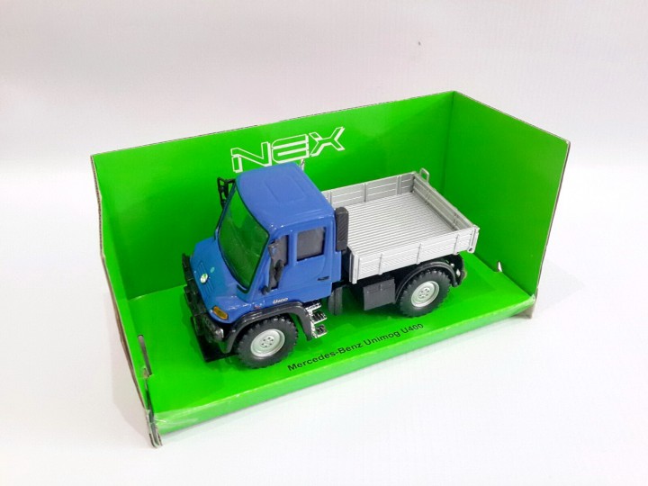 Mainan die cast Mercedez Unimog U400 Biru-Welly WT-Scala 1:43. Terdapat tatakan buat pajangan atau tatakan bisa dilepas dengan panjang 12 cm. Koleksi pula produk Welly lainnya: mercedez Unimog U400 kuning-Welly scala 1;43